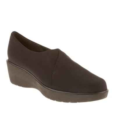Image Name: Details about 220 MUNRO Bravo Black Stretch Fabric Slip On Wedge Shoe ...